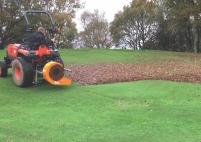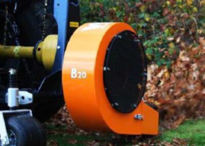 Turbine and housing are made out for durable steel. The turbine is designed using the “ forced air guidance” principle which not only generates a high volume of air for its size, but also high output pressure. Several options are available including terrain-adapting castor wheels and a 180 degree hydraulically adjustable exhaust chute enabling the machine to blow to the left and the right of the tractor.