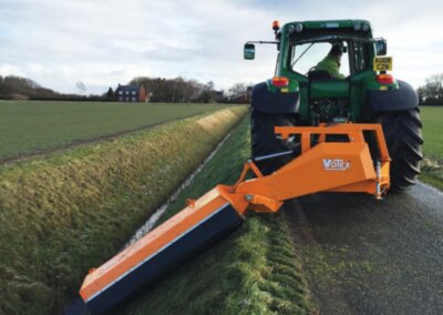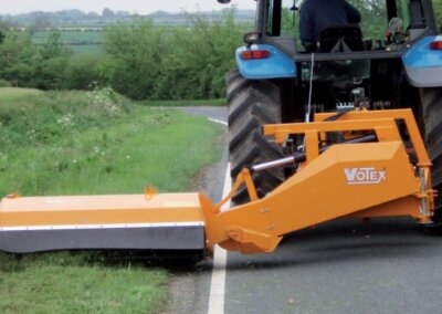 By using one single and one double spool valve, the machines operate from +90 to -50 degs, ideal for verges, banks or ditches. Also, where the work is close to steep banks, 600mm offset ensures the tractor is a safe distance from edges. A spring breakback allows the head to move on hitting an obstacle, and then return to its working position.